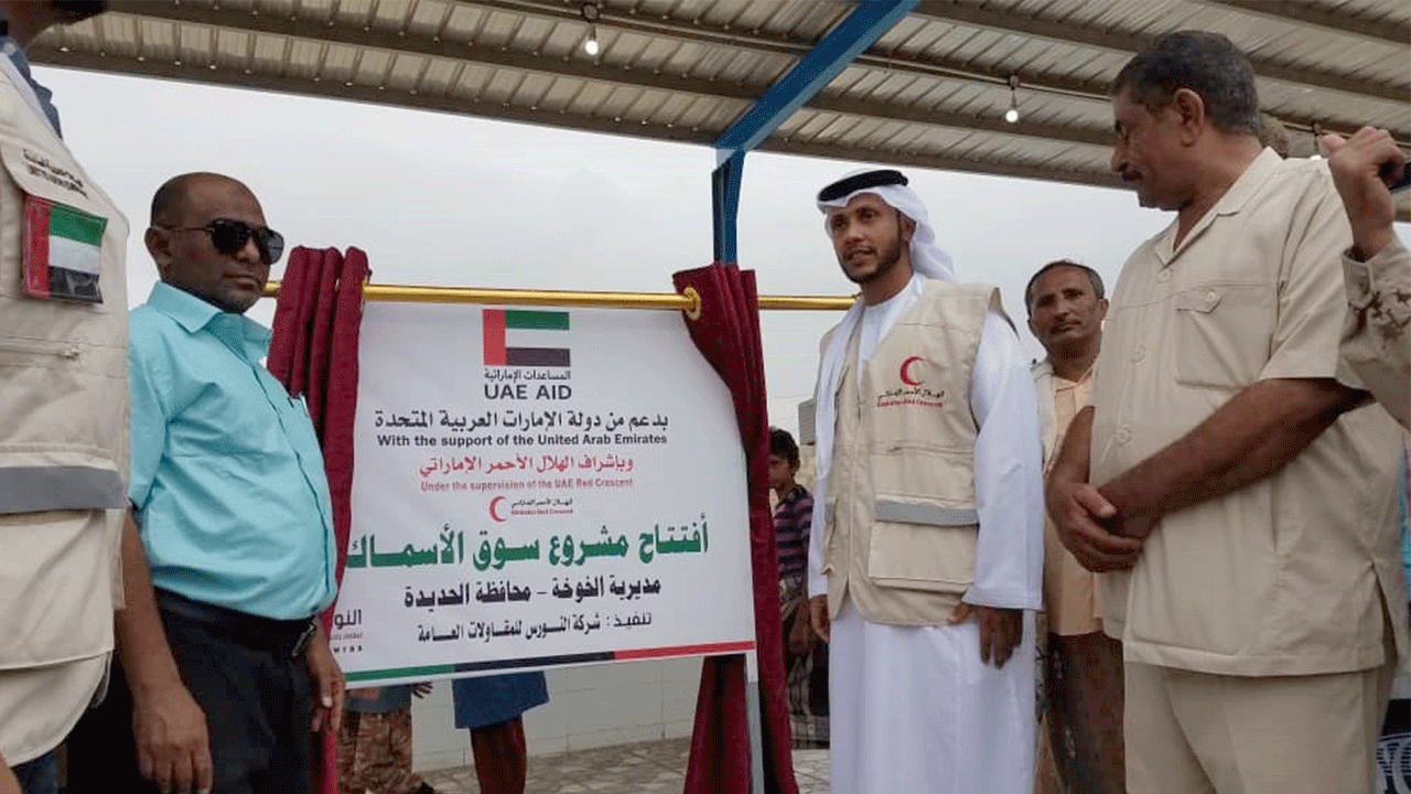 افتتحت دولة الإمارات ممثلة بذراعها الإنسانية "الهلال الأحمر"، اليوم، مشروع سوق الأسماك في مديرية الخوخة التابعة لمحافظة الحديدة، بعد تزويده بالتجهيزات والآلات.