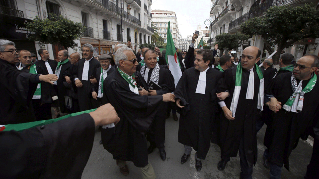 وتظاهر اليوم نحو ألف محام بلباسهم الخاص الأسود في وسط العاصمة الجزائرية للدعوة إلى تغيير النظام، مع استمرار الضغط غداة تظاهرات حاشدة في مختلف أنحاء البلاد تطالب بتنحي بوتفليقة.