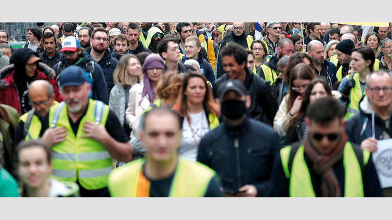 نظم محتجو «السترات الصفراء» مسيرات في العاصمة الفرنسية باريس، أمس، للأسبوع الـ19 على التوالي، ضد حكومة الرئيس إيمانويل ماكرون، فيما انضمت قوات الجيش إلى الشرطة للمساعدة على تجنب وقوع أي اضطرابات. ومُنع المحتجون من التجمع في الشانزليزيه، بعد نهب متاجر ومؤسسات وعمليات تخريب في مطلع الأسبوع الماضي، ما دفع الحكومة إلى استدعاء وحدات من الجيش، فيما أطلق عليها اسم عملية «الحارس» (سونتينيل). وتم حظر التظاهر في جادة الشانزيليزيه والمناطق المحيطة بها، وضمن مربع يشمل القصر الرئاسي والجمعية الوطنية.