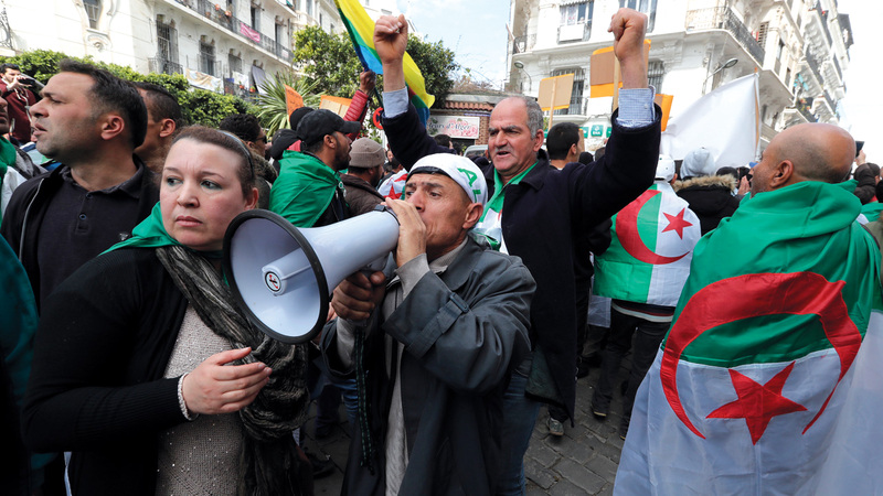 جانب من الاحتجاجات في الجزائر أمس. إي.بي.إيه