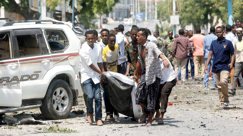 وكان 15 شخصاً قُتلوا يوم السبت الماضي في انفجارين وتبادل لإطلاق النار بين إرهابيين ينتمون لحركة الشباب وقوات الأمن في وسط مقديشو.