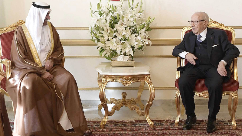 الباجي قائد السبسي خلال استقباله حمد بن محمد الشرقي. وام