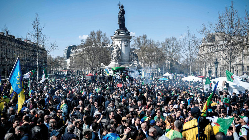 جزائريون يتظاهرون ضد بوتفليقة في باريس. أ.ف.ب