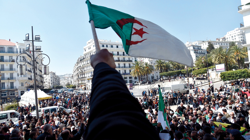 جزائريون يتظاهرون للمطالبة بتغيير شامل للنظام السياسي في البلاد بالجزائر العاصمة. أ.ف.ب