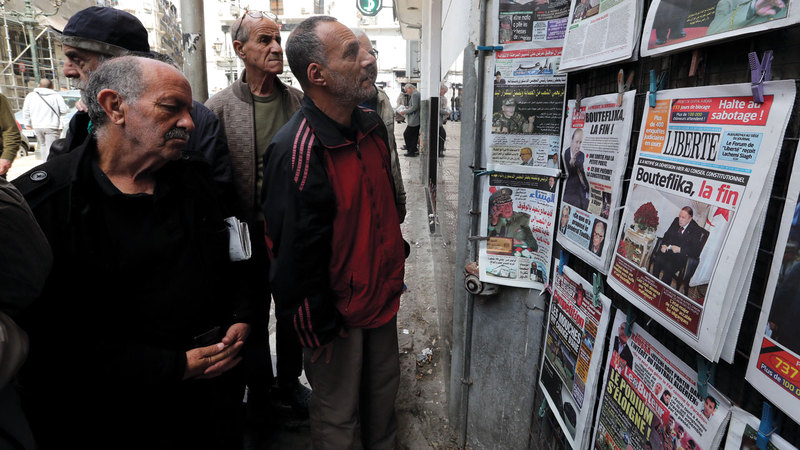 جزائريون يطالعون الصحف المحلية. إي.بي.إيه