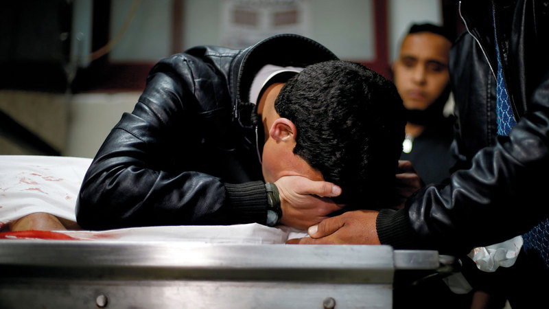 أحد أقرباء الشهيد ينتحب خلال تشييعه في غزة أمس. رويترز
