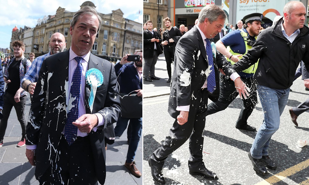 عندما تعرض رئيس حزب بريكست اليميني البريطاني نيجل فرج للرش بمخفوق الحليب "ميلكشيك" خلال قيامه بحملته من اجل انتخابات البرلمان الأوروبي في مدينة نيوكاسل البريطانية، لم يكن من الواضح ماذا كان فرج يشعر بالغضب أكثر من المتظاهر الذي قذفه بالحليب أم فريقه الأمني الذين لم ينتبهوا اليه. وقال فرج لفريقه الأمني وقطرات الكراميل و الحليب تتساقط منه "إنه فشل امني ذريع. كان بإمكانكم مشاهدته قبل ميل من وصوله إلي"