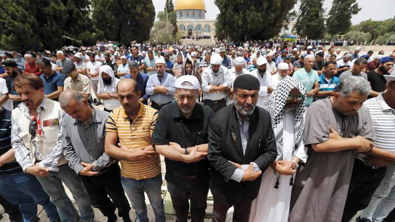 فلسطينيون يؤدون صلاة الجمعة في المسجد الأقصى. أ.ف.ب