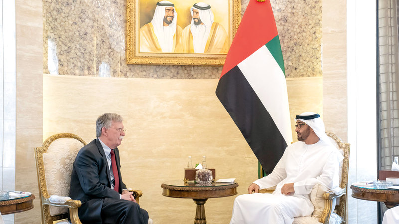 محمد بن زايد خلال لقائه جون بولتون. وام
