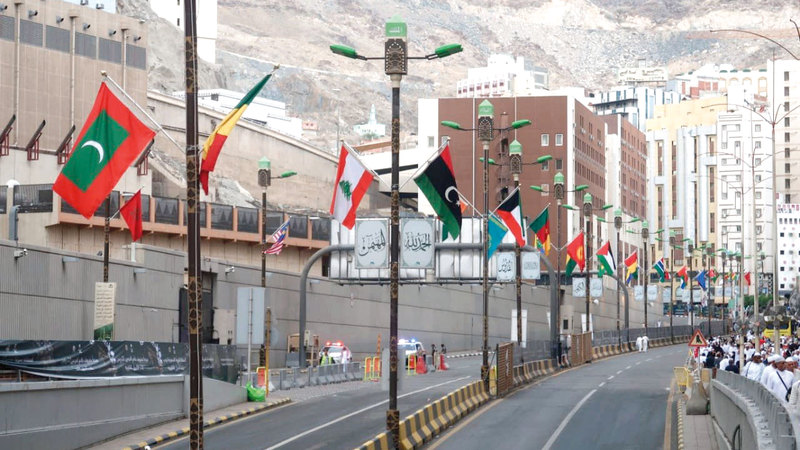 شوارع المملكة ازدانت بأعلام الدول المشاركة في القمم الثلاث. واس