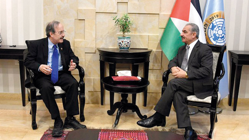 وأكد اشتية على «ضرورة خروج أصوات من الكونغرس الأميركي تطالب بإنقاذ حل الدولتين، وتضغط على إدارة دونالد ترامب للتراجع عن العقوبات التي فرضتها على الفلسطينيين، بالإضافة إلى وقف الحرب المالية بحق أبناء الشعب الفلسطيني».
