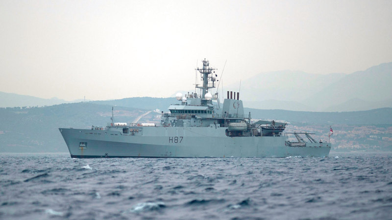 البحرية البريطانية تقوم بدوريات بالقرب من ناقلة النفط «جريس 1». أ.ف.ب