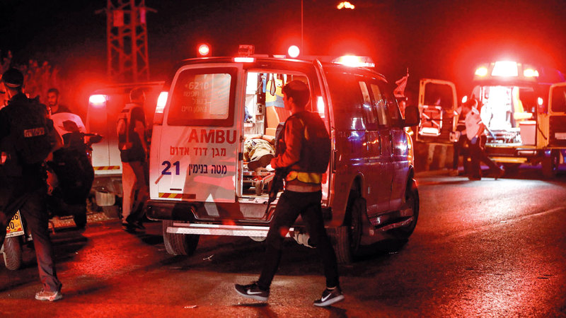 سيارات إسعاف إسرائيلية في مكان عملية الدهس المزعومة. أ.ف.ب