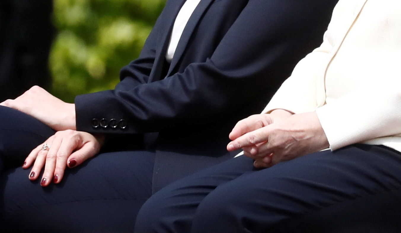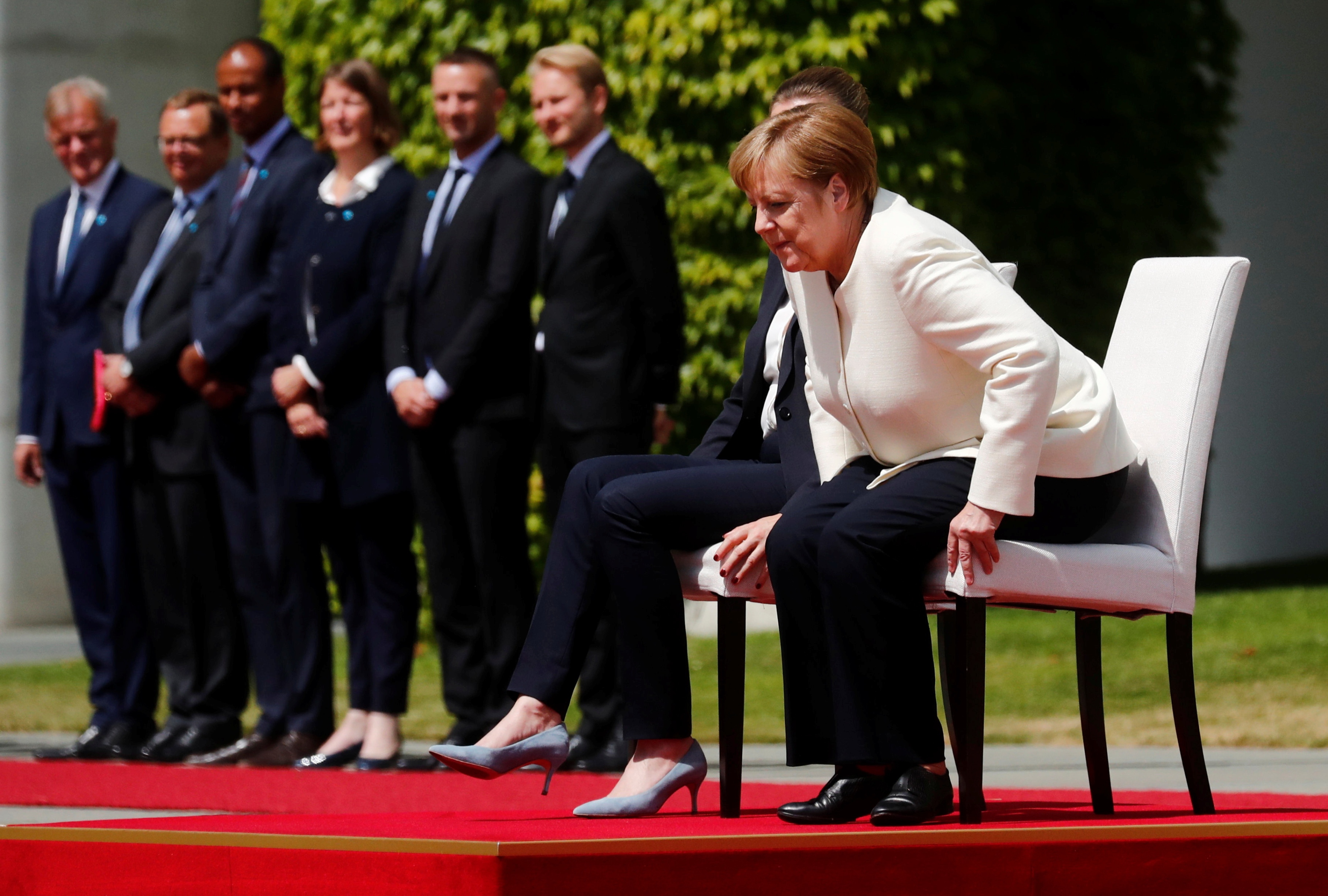 بالصور.. "الارتجاف" يجبر ميركل على تحية العلم على كرسي