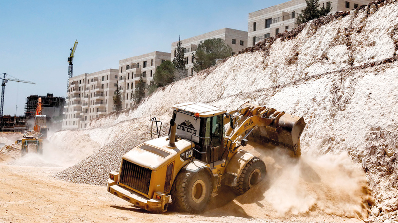 جرافة في موقع بناء بمستوطنة أقيمت في القدس الشرقية. أ.ف.ب