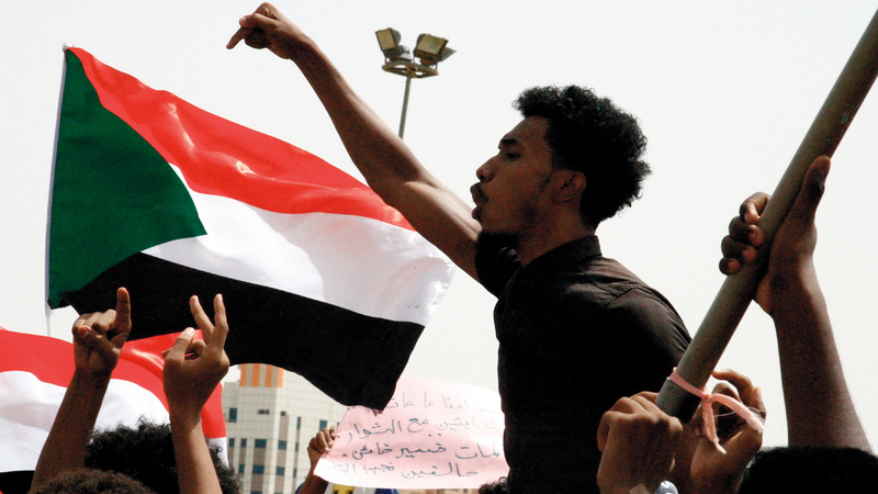 متظاهر خلال مسيرة لتأبين قتلى الاحتجاجات في الخرطوم. أرشيفية