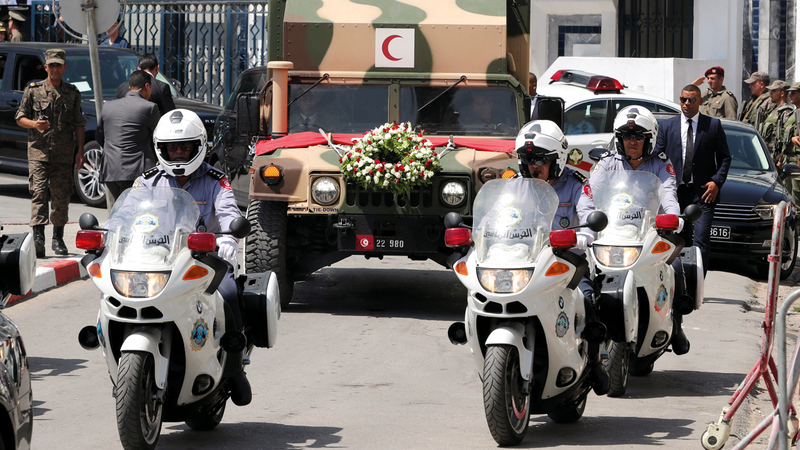 نقل جثمان السبسي من المستشفى العسكري تمهيداً لمواراته الثرى اليوم. إي.بي.إيه