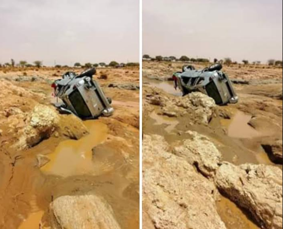بالصور.. سيل يجرف سيارتي نجل المهدي ووفد من "الحرية والتغيير" بالسودان