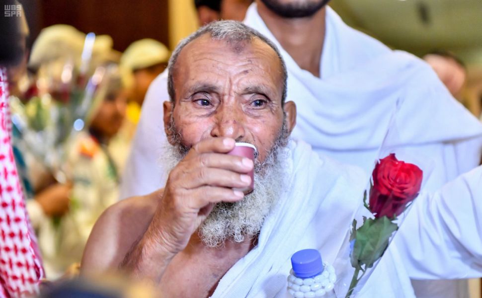 وفور وصول الحجاج إلى مقر إقامتهم، استقبلهم عدد من رؤساء وأعضاء اللجان العاملة في البرنامج، بالورود وماء زمزم والتمر والقهوة، مصحوبة بالتكبيرات التي صدحت بها حناجر الضيوف.