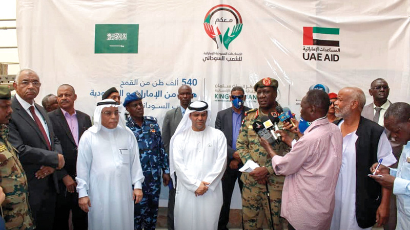 قدّمت دولة الإمارات العربية المتحدة والمملكة العربية السعودية 540 ألف طن من القمح لتلبية الاحتياجات الغذائية الأساسية للشعب السوداني لثلاثة أشهر كمرحلة أولى، حيث تم توريد الدفعتين الأولى والثانية وشملت 140 ألف طن من القمح.