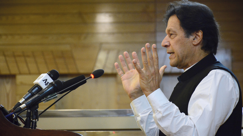 رئيس الوزراء الباكستاني عمران خان خلال خطابه من مظفر آباد. أ.ب