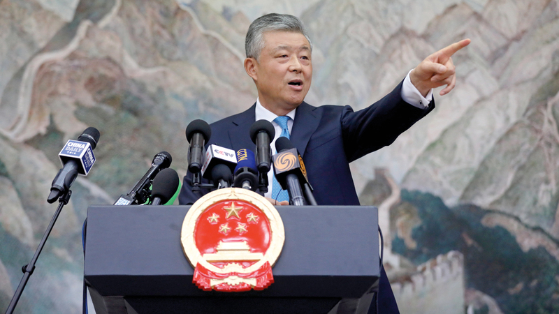 سفير الصين في لندن ليو شياو مينغ يؤكد قدرة بكين على قمع الاضطرابات بسرعة. رويترز