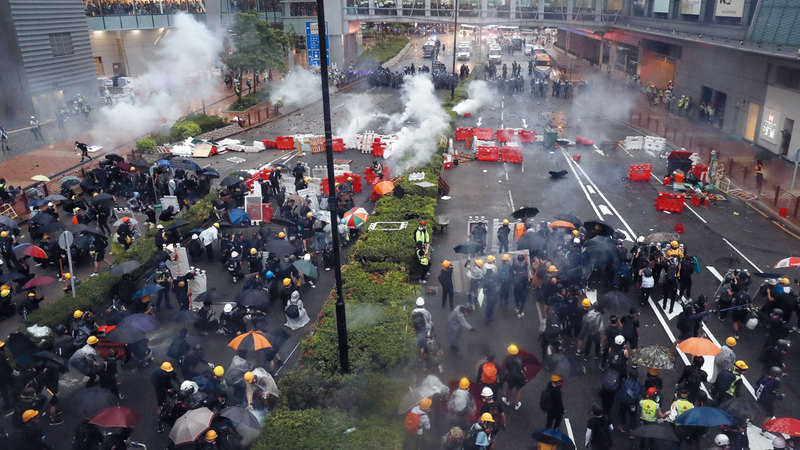 المتظاهرون ألقوا الطوب وقنابل المولوتوف على الشرطة في هونغ كونغ. إي.بي.أيه