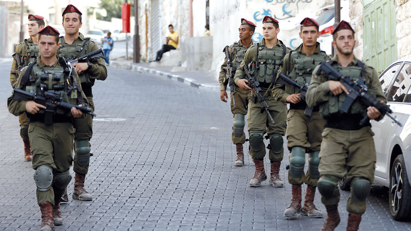 جنود الاحتلال في مدينة الخليل خلال حملة تفتيش عقب هدم منازل في المدينة. إي.بي.إيه