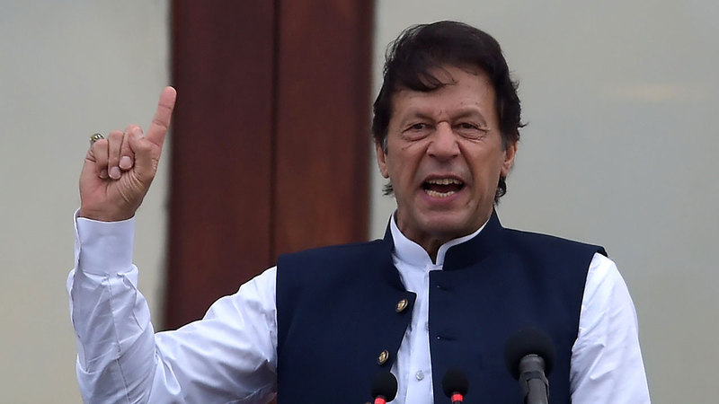 عمران خان خلال إلقائه خطاباً بشأن كشمير. أ.ف.ب