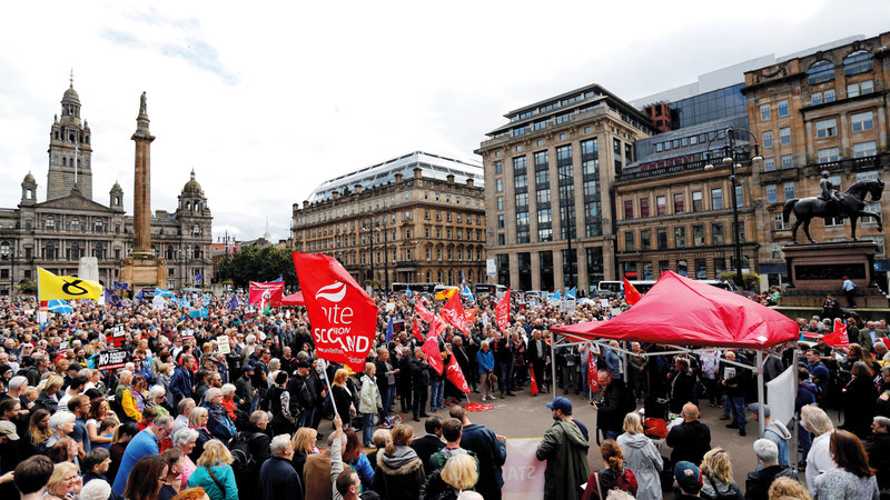 وخرج الآلاف إلى الشوارع في العديد من المدن والبلدات البريطانية منذ الصباح، وقال منظمو التظاهرات التي تجري تحت شعار «وقف الانقلاب»، إنهم يأملون مشاركة مئات الآلاف.