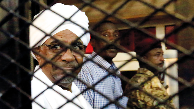 البشير في قفص الاتهام خلال جلسة محاكمته. رويترز