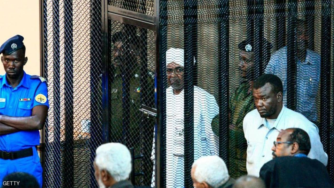 وجلس البشير داخل قفص معدني بقاعة المحكمة مرتديا الجلباب والعمامة البيضاء التقليدية.