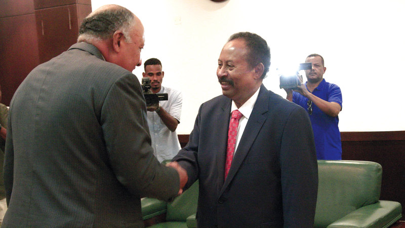 حمدوك خلال استقباله شكري في الخرطوم. أ.ف.ب