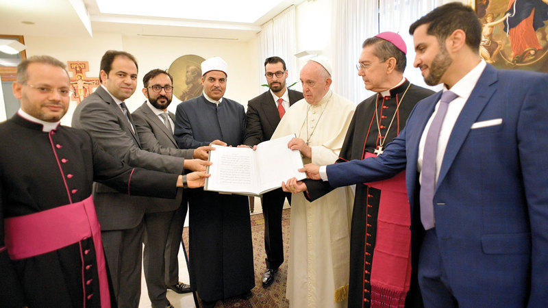 عقدت اللجنة العليا للأخوة الإنسانية المعنية بتحقيق الأهداف الواردة في وثيقة الأخوّة الإنسانية من أجل السلام العالمي والتعايش المشترك، التي تم تشكيلها في أغسطس من العام الجاري، اجتماعها الأول أول من أمس، الذي وافق ذكرى الـ11 سبتمبر، بـ«كازا سانتا مارتا» في دولة الفاتيكان، وتم اختيار هذا التاريخ كرمز لإرادة بناء الحياة والأخوة في وقت يزرع فيه الآخرون الموت والدمار.
