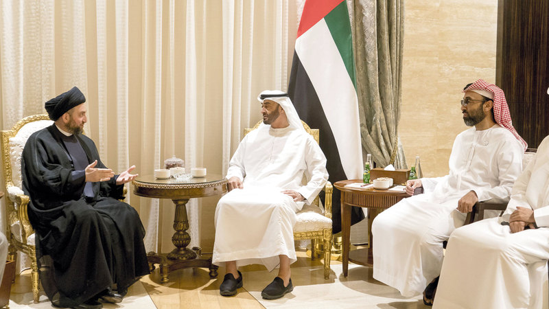 محمد بن زايد خلال استقباله عمار الحكيم. وام