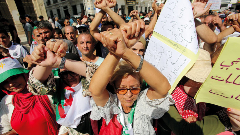 جانب من المسيرة التي شهدتها الجزائر أمس. رويترز