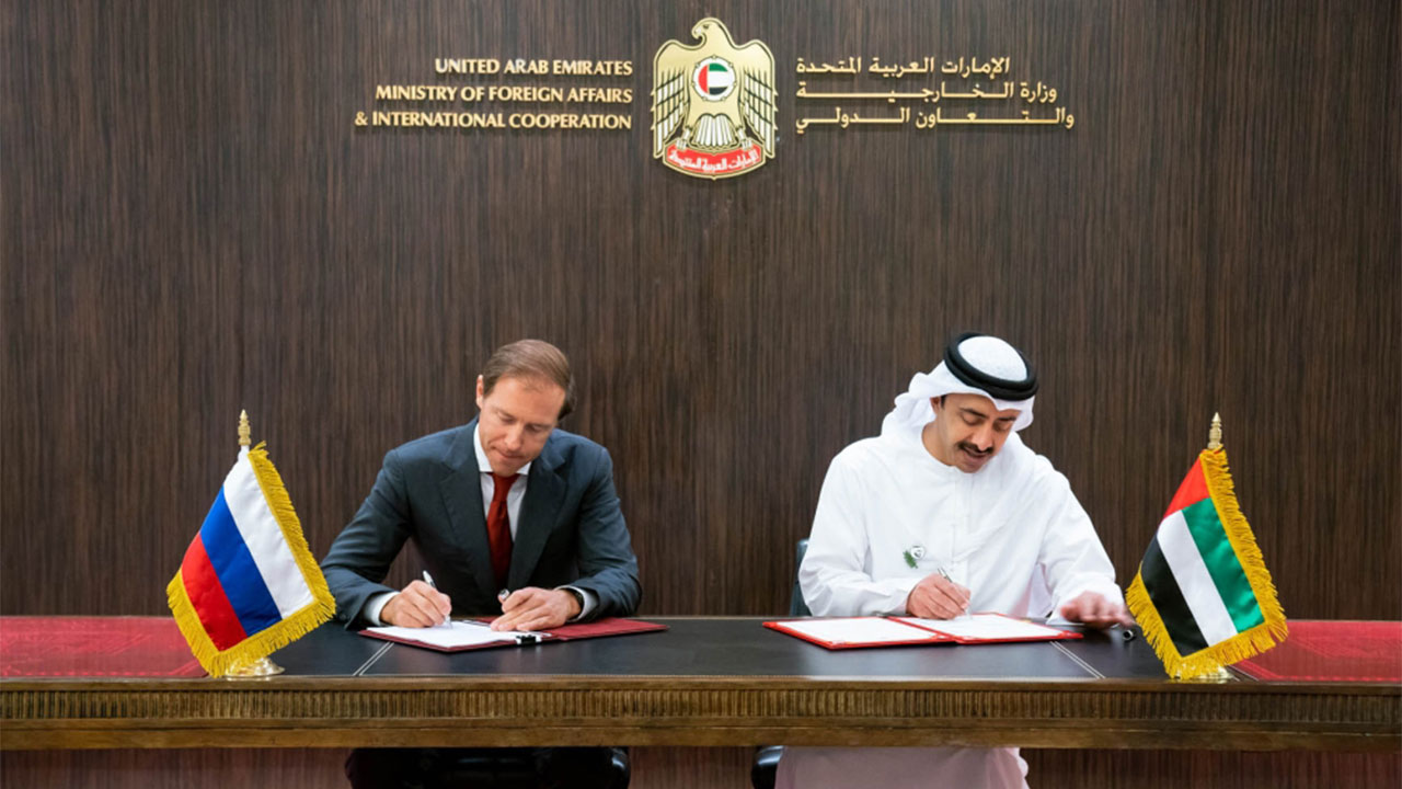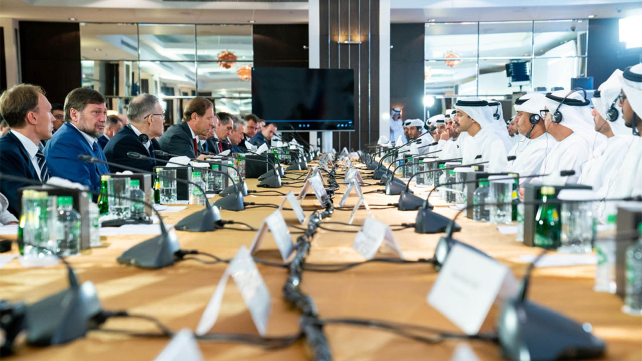من جانبه أكد دينيس مانتوروف في كلمته على العلاقات الاستراتيجية المتميزة التي تجمع بين دولة الإمارات وروسيا الاتحادية مشيرا إلى أن دولة الإمارات شريك تجاري مهم لروسيا في المنطقة.