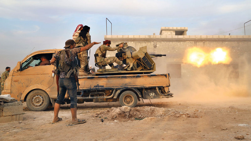 مسلحون موالون لتركيا في شمال شرق سورية. أ.ب