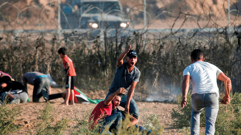 فلسطينيون يحاولون إسعاف مصابين في غزة أول من أمس. أ.ف.ب