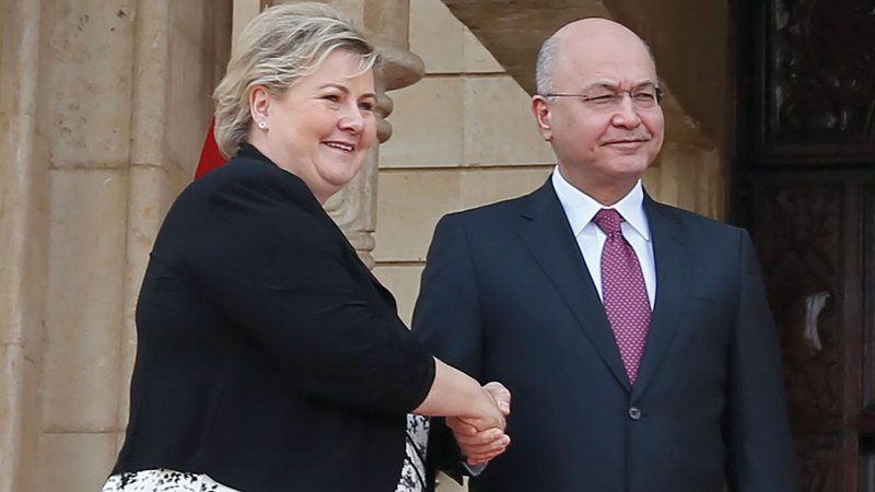 وقال خلال اجتماع عقده أمس مع رئيسة وزراء النرويج، أرينا سولببرج، التي تزور العراق حالياً: «لدى النرويج تجربة ناجحة بشأن صناديق الأجيال، ويمكن لشركاتها التي تتمتع بكفاءة عالية المساهمة في إعمار العراق». وعقدت سولببرج اجتماعاً مع الرئيس العراقي برهم صالح، واستعرضت معه الجهود الدولية في الحرب على الإرهاب والتعاون الثنائي بين البلدين.