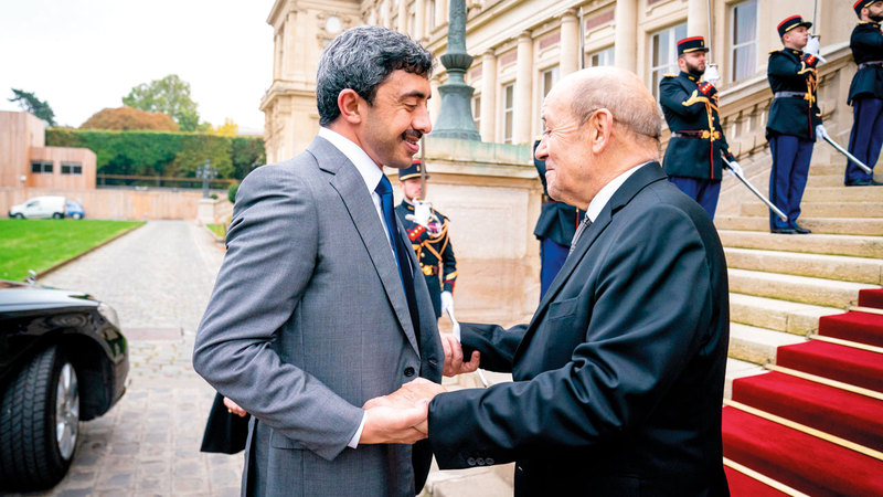 عبدالله بن زايد بحث مع جان إيف لودريان مستجدات الأوضاع في المنطقة. وام