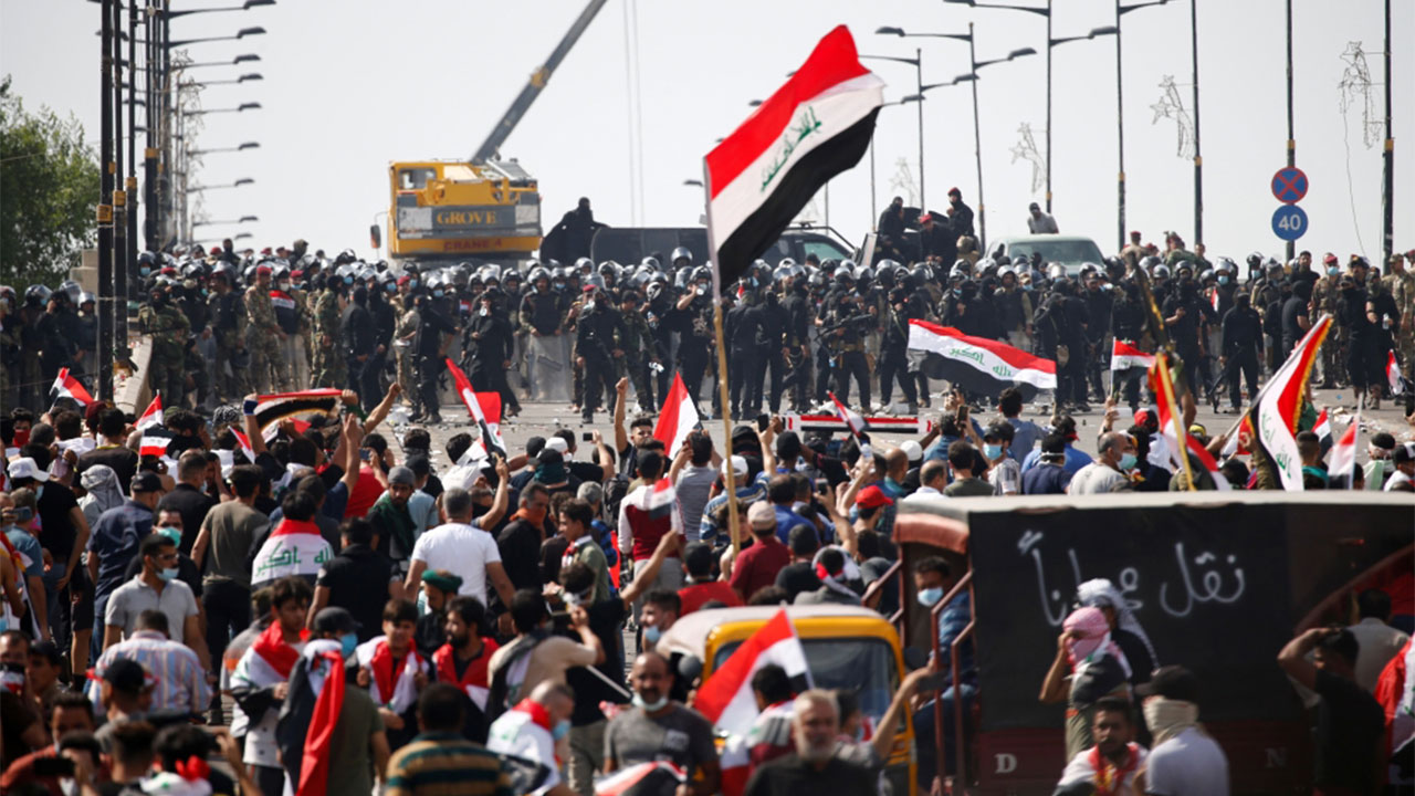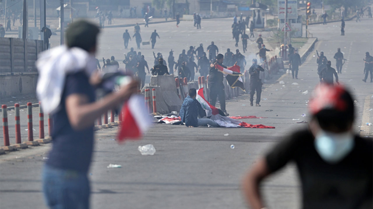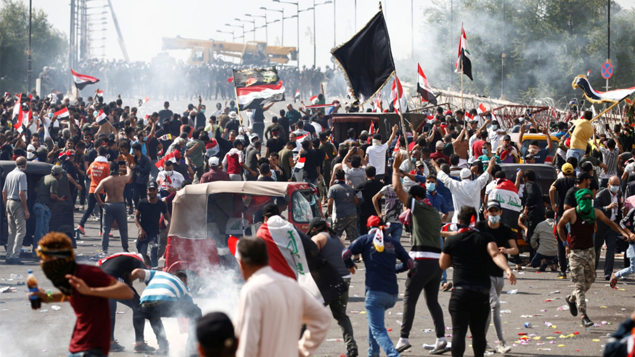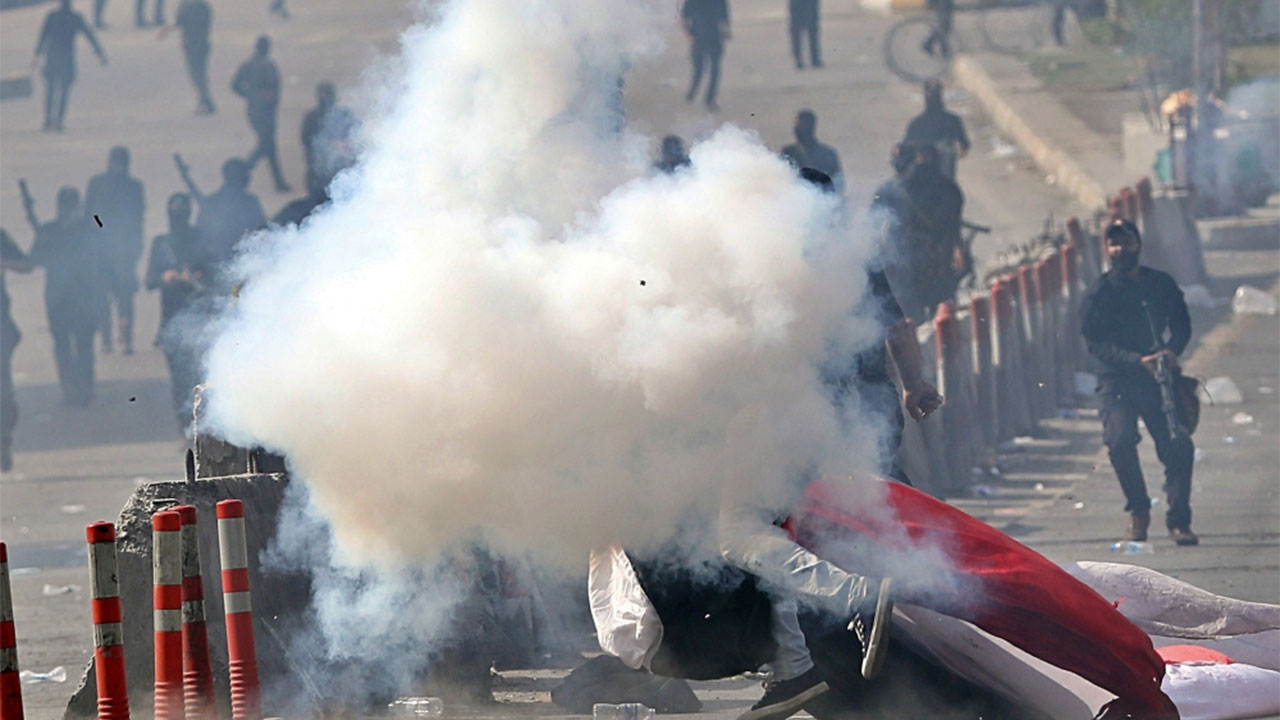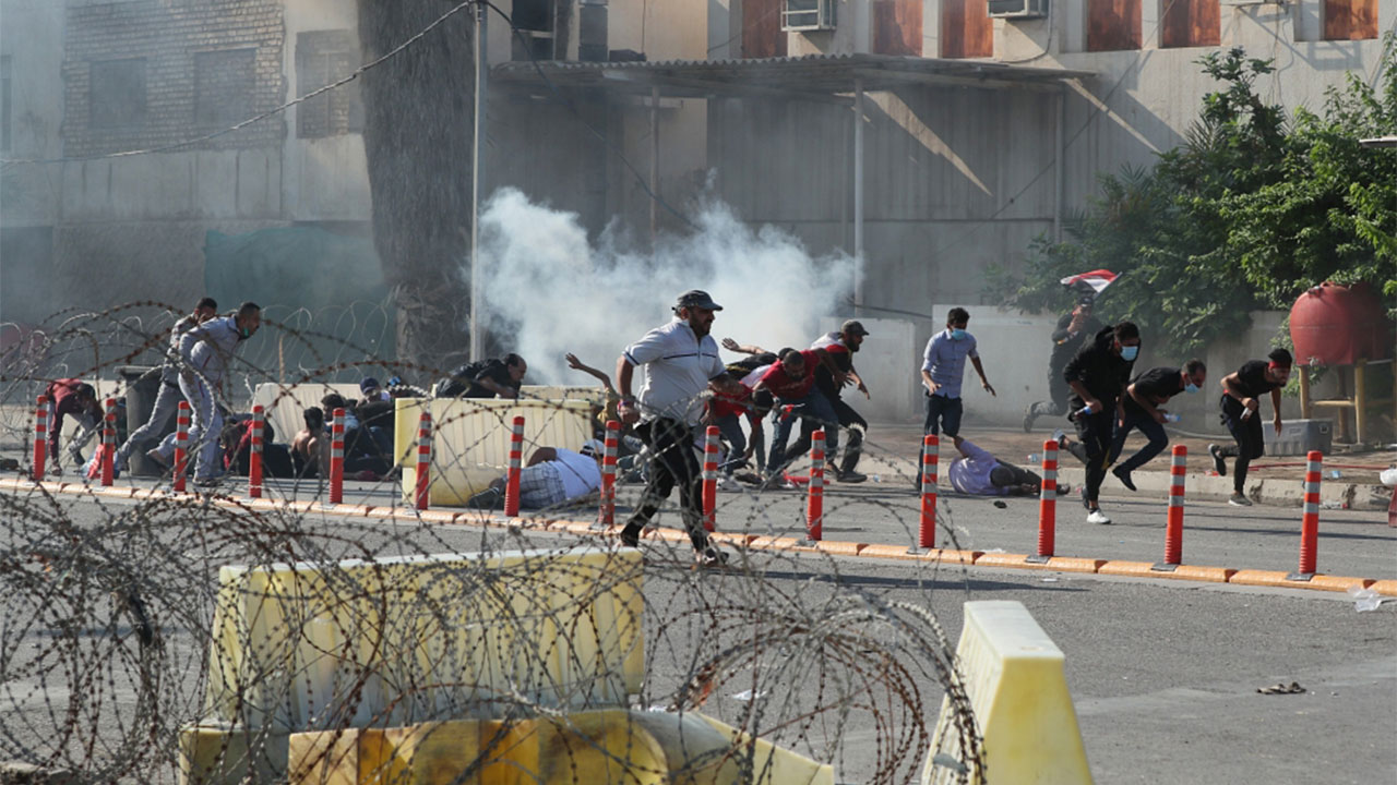 واستخدمت قوات مكافحة الشغب الغاز المسيل للدموع في محاولة لصد تقدم المتظاهرين وإبعادهم عن المنطقة الخضراء، التي تضم مقار حكومية ودبلوماسية، خصوصاً سفارة الولايات المتحدة، بحسب ما أفاد مراسلون من وكالة فرانس برس في المكان.