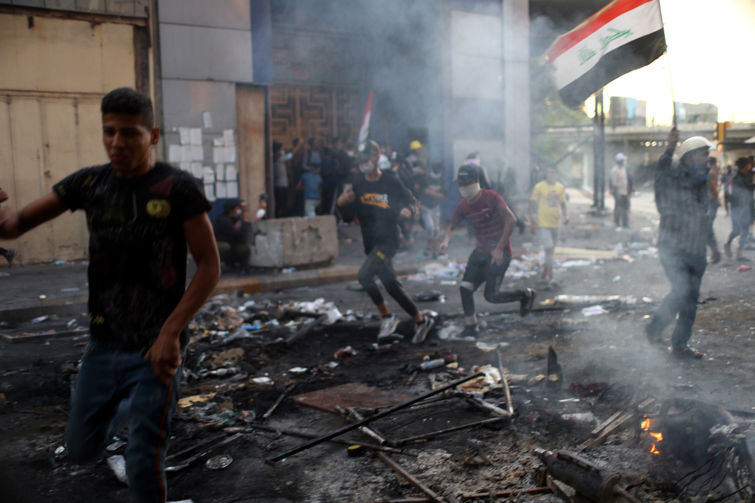 وأشارت المصادر إلى أن المتظاهر الثالث قضى بعد إصابته بقنبلة غاز مسيل للدموع، خلال محاولة القوات الأمنية صد المحتجين قرب جسر السنك القريب من ساحة التحرير المركزية للاحتجاجات في وسط العاصمة.