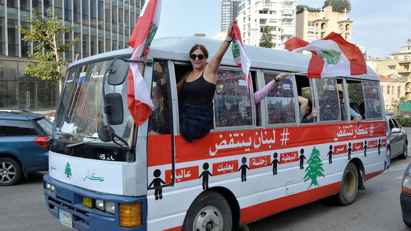 وفي صيدا جنوب لبنان، نظم عدد من المدارس في صيدا وقفة احتجاجية في تقاطع «إيليا»، دعماً للحراك الاحتجاجي، وهو يدخل شهره الأول، ثم انطلقوا في مسيرة راجلة إلى أسواق صيدا، وسط إجراءات أمنية للجيش اللبناني، وقوى الأمن الداخلي. ويطالب المحتجون بتشكيل حكومة إنقاذ من التكنوقراط، وإجراء انتخابات نيابية مبكرة، وخفض سن الاقتراع إلى 18 عاماً، ومعالجة الأوضاع الاقتصادية، واسترداد الأموال المنهوبة، ومحاسبة الفاسدين، ويؤكدون استمرار تحركهم حتى تحقيق المطالب. وأغلقت المصارف أبوابها، أمس، وقال رئيس اتحاد نقابات موظفي المصارف في لبنان، جورج الحاج، إن الاتحاد سيجتمع، اليوم أو غداً، لاتخاذ قرار بشأن إنهاء إضراب، بعد تسلمه خطة لتأمين البنوك، عن طريق تكثيف وجود الشرطة. وبدأ الاتحاد إضراباً، الثلاثاء الماضي، بسبب مخاوف تتعلق بالأمان، حيث تعم احتجاجات ضد النخبة السياسية أنحاء البلاد، ويطالب المودعون بأموالهم، بعدما فرضت البنوك قيوداً جديدة.