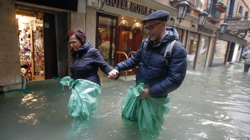 رفعت مدينة البندقية (فينيسيا) في إيطاليا، حالة الطوارئ إلى مستوى استثنائي، حيث أصدرت سلطات الحماية المدنية «إنذاراً أحمر» للطقس، أمس، محذرة من عواصف عنيفة، بعد أن اجتاحت المياه المدينة الشهيرة، وأغرقت الجزء الأكبر منها.