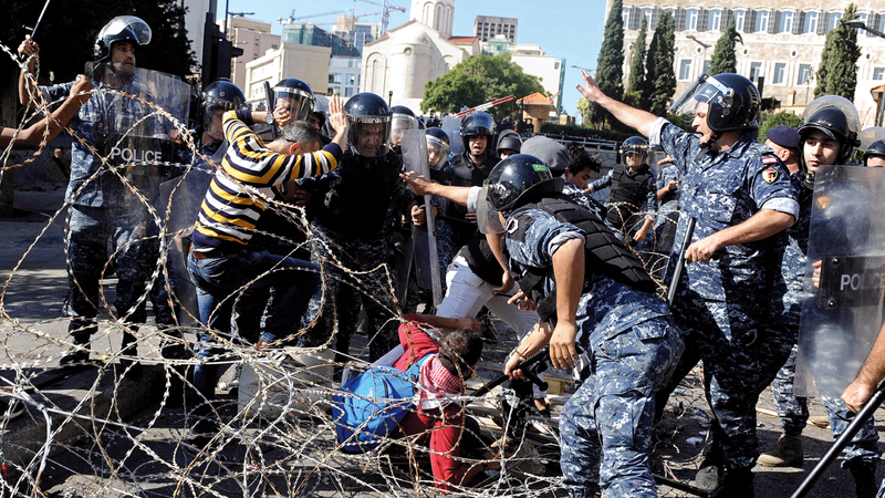 اشتباكات بين الأمن اللبناني ومتظاهرين أمس. أ.ب