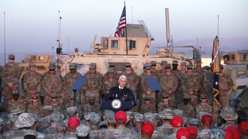 خلال زيارة مايك بنس للقوات الأميركية في العراق أمس. رويترز