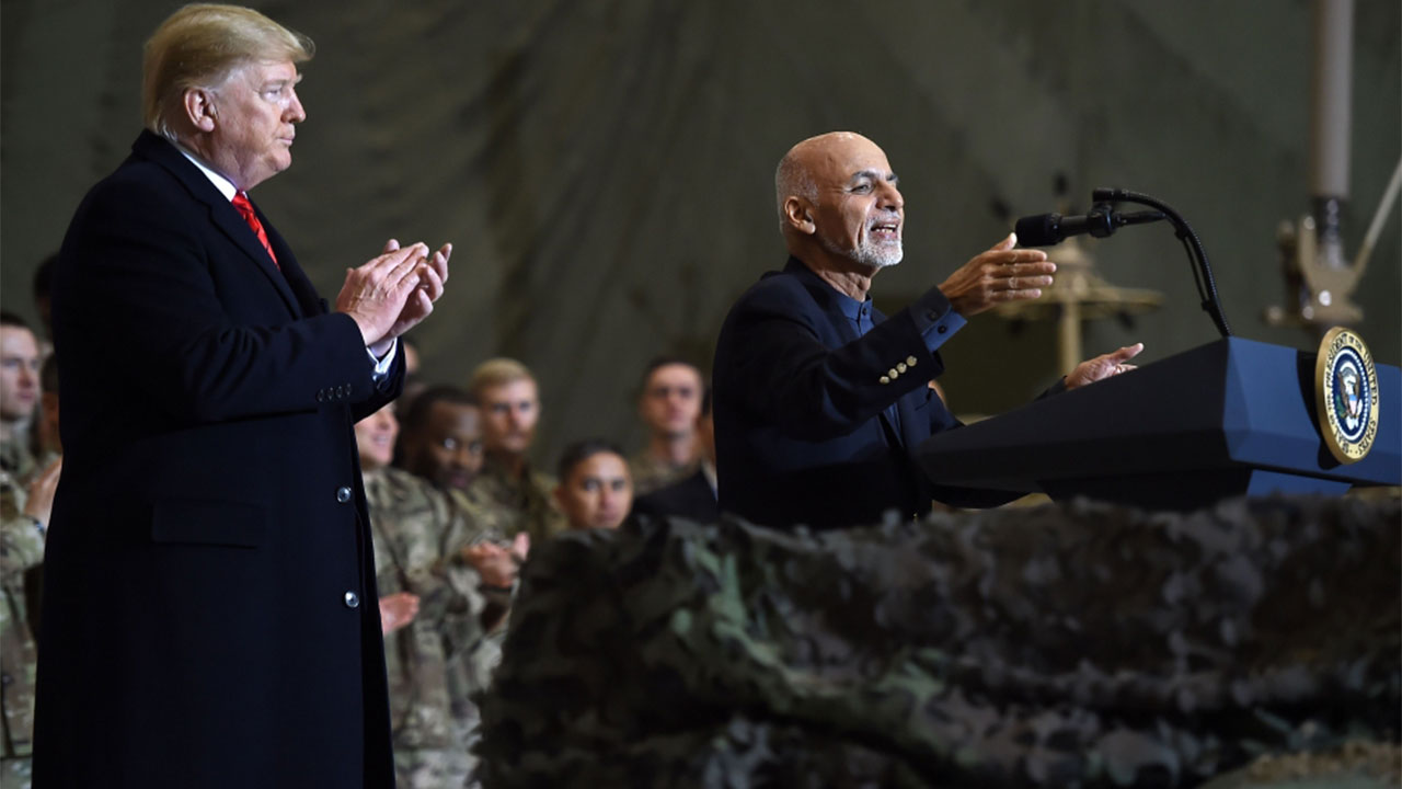 والتقى الرئيس الأميركي بنظيره الأفغاني أشرف غني الذي حضر إلى القاعدة العسكرية.