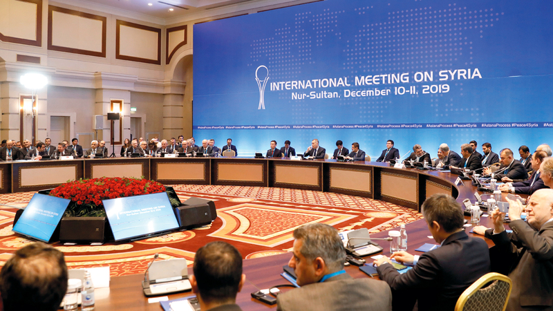 أعضاء الوفود خلال اجتماع محادثات السلام حول سورية في نور سلطان. رويترز