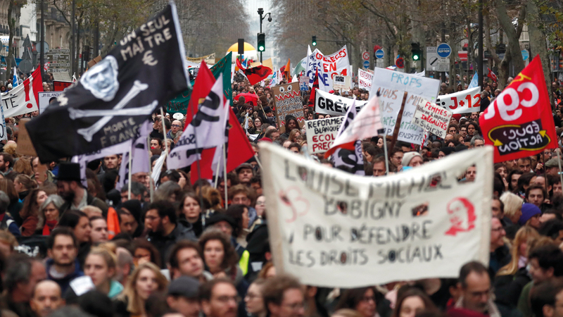 آلاف المتظاهرين خلال مسيرة في باريس ضد إصلاحات نظام التقاعد. إي.بي.إيه
